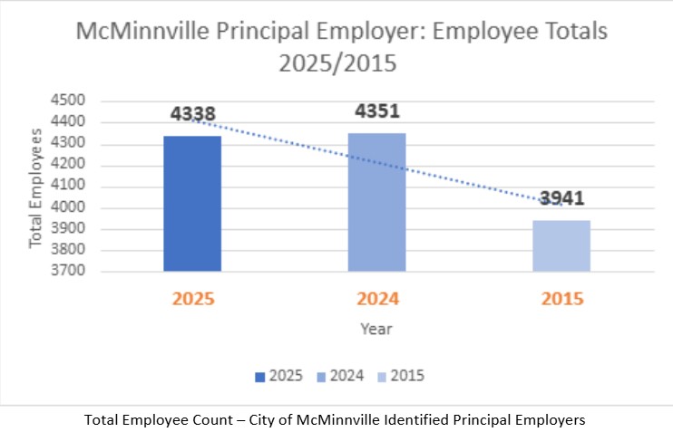 McMinnville’s workforce data continues to reflect a community that is adapting to change rather than standing still. Findings from MEDP’s 2025 Principal Employer Report — a snapshot analysis based on 15 employer responses across key industry sectors — point to a generally stable employment base, alongside workforce pressures that are evolving rather than disappearing.